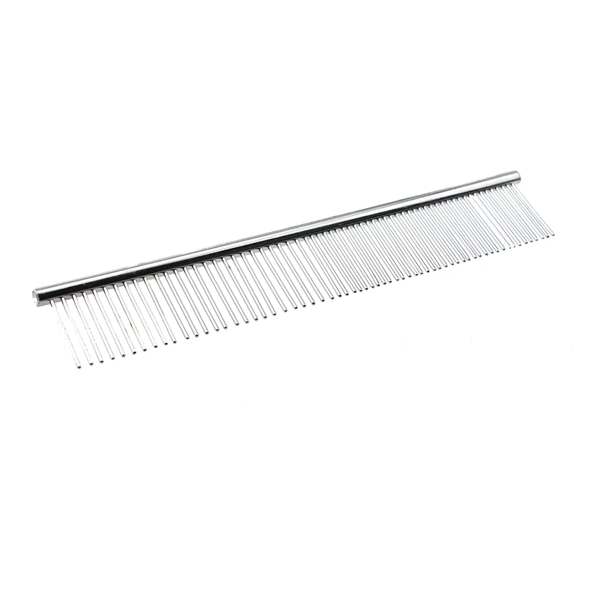 Características: Este peine de acero inoxidable es duradero y resistente a la corrosión. Su diseño previene la electricidad estática, brindando una experiencia de peinado cómoda para tu mascota.